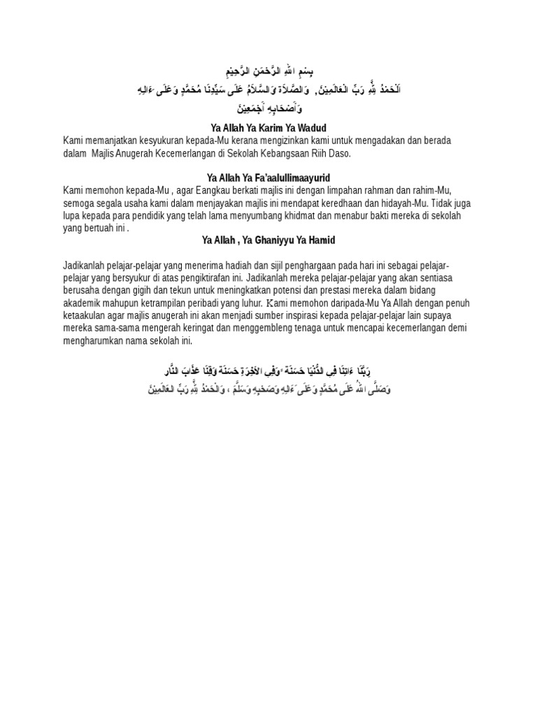 Doa Sempena Hari Anugerah Kecemerlangan from imgv2-2-f.scribdassets.com Kini, majlis anugerah pelajar cemerlang telah menjadi program tahunan setiap sekolah dalam negara ini. Ucapan pengarah kolej permatapintar™ negara ybhg. Majlis telah diadakan pada 10 oktober.majlis telah disempurnakan oleh tuan hj ahmad tajudin b.jab.pengarah bahagian pendidikan teknik & vokasional kementerian pelajaran malaysia.pelbagai aktiviti telah dijalankan antaranya pertandingan kawat kaki, pameran unit beruniform. Majlis anugerah kecemerlangan pelajar 2016. Dr ahmad hezri adnan, ketua pegawai eksekutif lada merangkap pengerusi lembaga pengarah plsb. This is majlis anugerah pelajar cemerlang 2010 by dzul_smtsp2 on vimeo, the home for high quality videos and the people who love them. Majlis anugerah kecemerlangan kita pada hari ini diteruskan lagi dengan agenda yang seterusnya. Majlis anugerah kecemerlangan pelajar mtimh 2018 full.