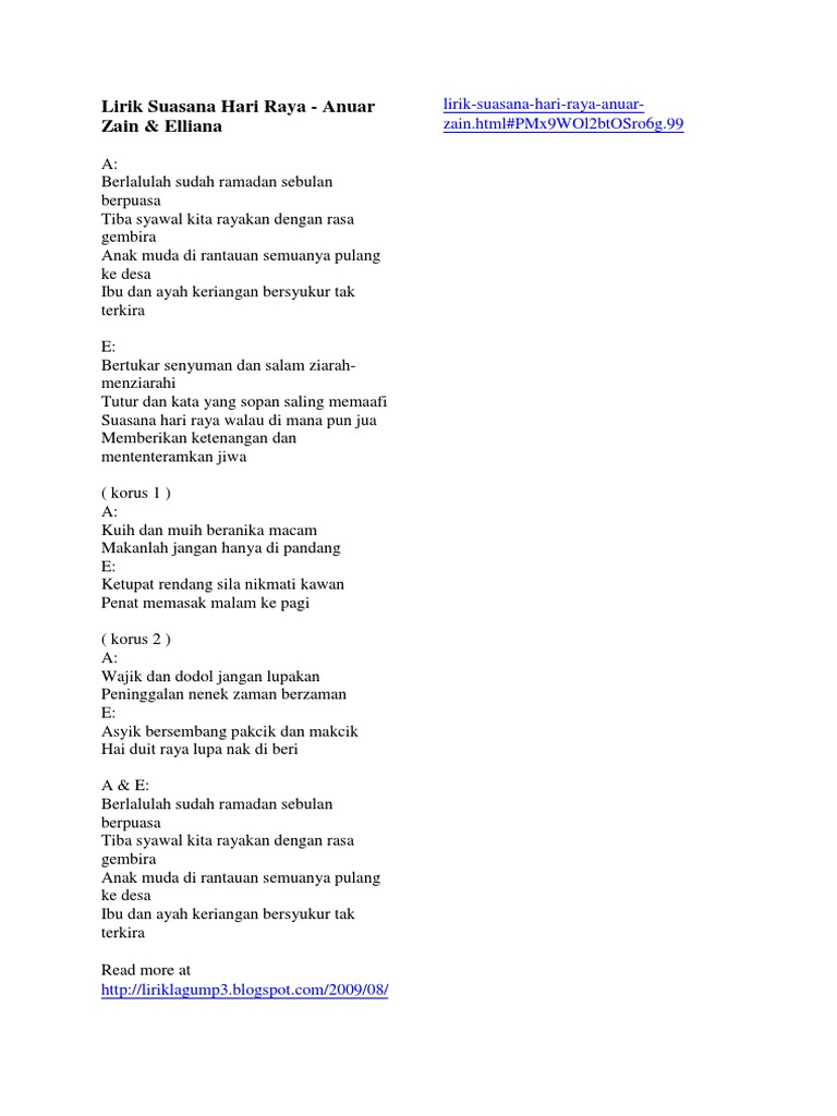 Liriknya lagu belum tersedia, kami akan memperbarui liriknya sesegera mungkin, anda juga dapat berkontribusi lirik lagu untuk kami di bagian komentar dari lagu tersebut. Gudang lagu mp3 terbaru, download lagu mp3 mudah dan cepat. Sentuhan hari raya (1994) hakcipta rakaman: F g c amtiba syawal kita rayakan dengan rasa gembira. verse c f g c am berlalulah sudah ramadan sebulan berpuasa f g c am tiba syawal kita rayakan dengan rasa gembira f g em am anak muda di rantauan semuanya pulang ke desa f g c ibu dan ayah. You can streaming and download for free here! Chordify is your #1 platform for chords. Savesave lirik lagu raya anuar zain for later. Download lagu mp3 & video: 10 jari aidilfitri forteen official mtv. Download lagu anuar zain mp3 gratis, free download anuar zain lagu mp3 terbaru di metrolagu. This is suasana hari raya anuar zain ft elinna by bike nest on vimeo, the home for high quality videos and the people who love them. Posted 6 years ago6 years ago.