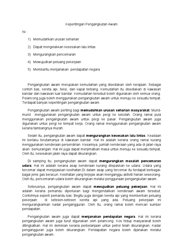 Related : Masalah Perkembangan Pengangkutan Awam - Pdf Konsep Kemudahsampaian Dalam Perkhidmatan Pengangkutan Awam The Concept Of Accessibility In Public Transportation Services - Selain daripada perlu memberi isi isi penting yang berkaitan pelajar juga perlu menghurai dengan gaya bahasa yang menarik serta betul dari segi penggunaan bahasanya sebagai panduan berikut dikongsikan contoh karangan kebaikan menggunakan pengangkutan awam..